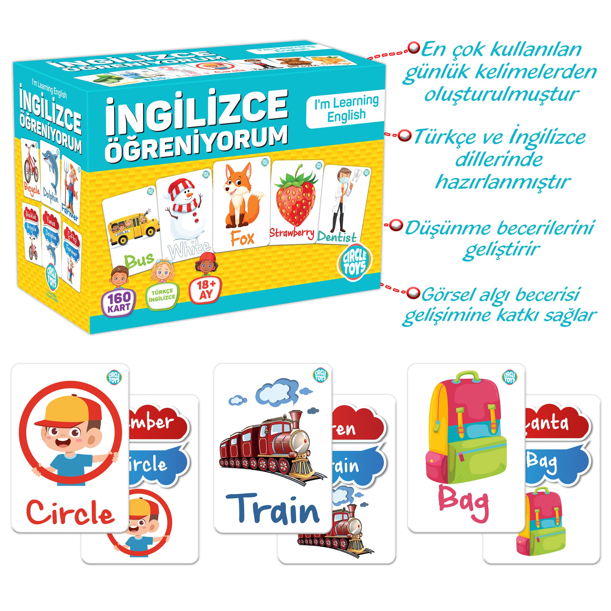 Kartlar sık kullanılan 150 adet kelimelerden oluşur. Kartların ön yüzünde ilgili resim ve kelimenin Türkçe- İngilizce yazılışı verilmiştir. Resimler gösterilerek İngilizceleri seslendirilir. Çocuğun da aynı seslendirmeyi taklit etmesi istenir. Bu aktiviteler belirli zaman aralıkları ile tekrar edilirse çocuk farkında olmadan gördüğü resmin İngilizcesini öğrenecektir. İngilizce İlk Kelimelerim kartları farklı aktivitelerde de kullanılabilir.