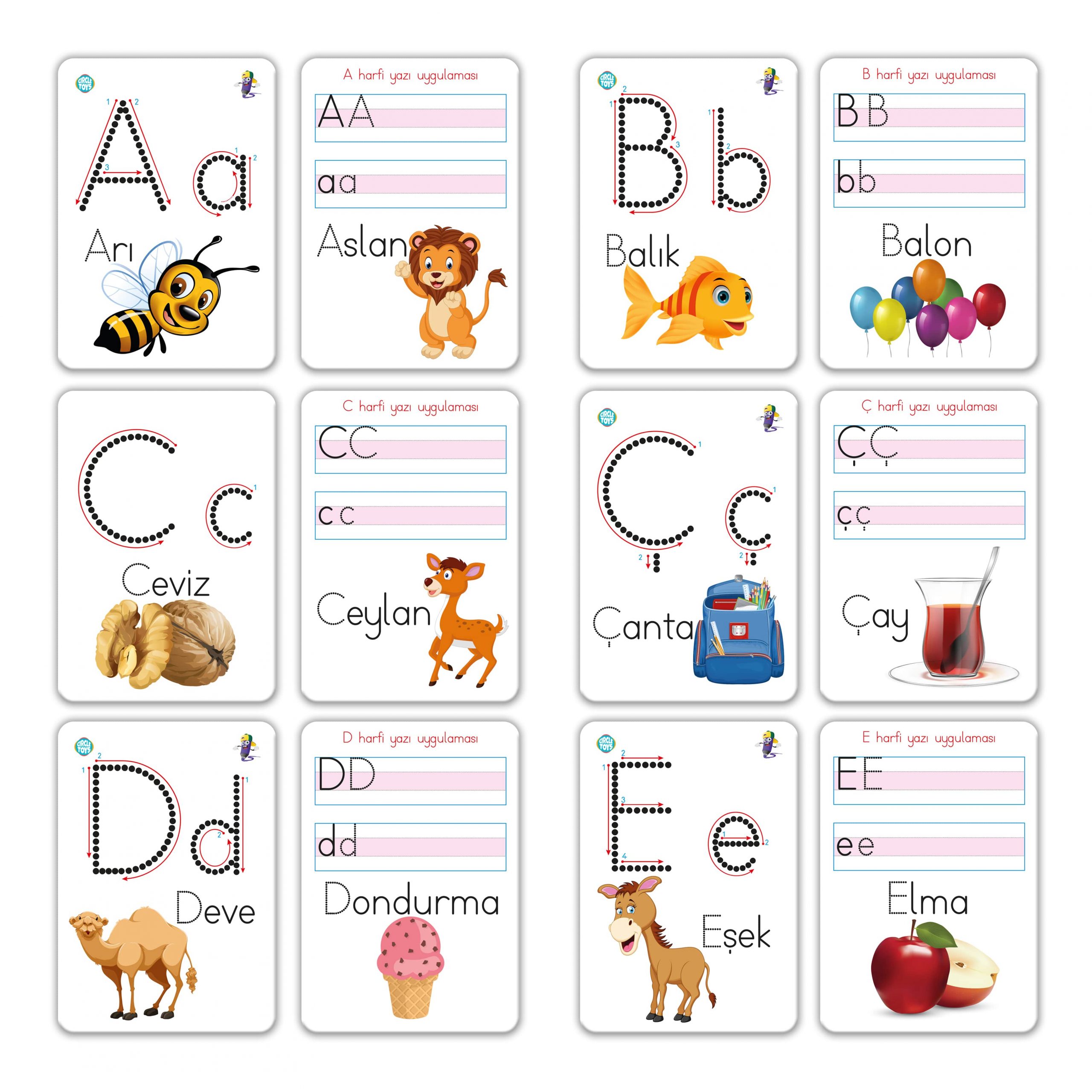 Öncelikle ilk okuma yazma öğretiminde kullanılan harf gruplarına göre kartları sıralayınız. Öğrenilecek harfin yanına her hangi bir sesli harf getirmeden seslendiriniz. Çocuğun kalemi doğru tutarak kart üzerinde bulunan harfi yazmasını sağlayınız.